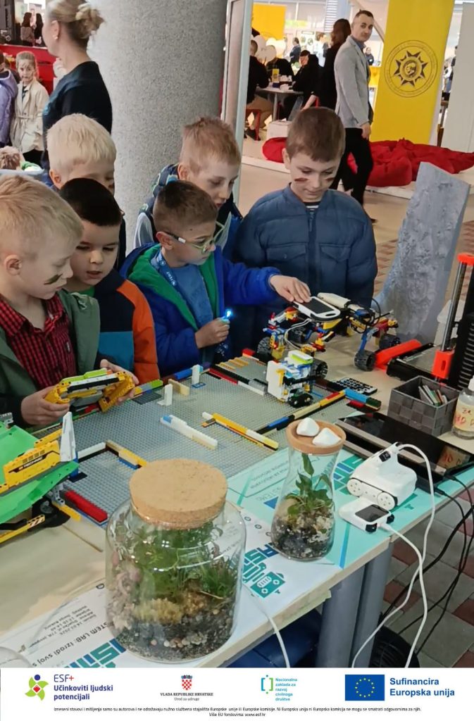 Ovo je bila odlična prilika kako bi se djeca upoznala s robotikom, programiranjem i STEM eksperimentima te saznali kako se mogu uključiti u besplatne STEM radionice u okviru projekta „Zajedno raSTEMo“.