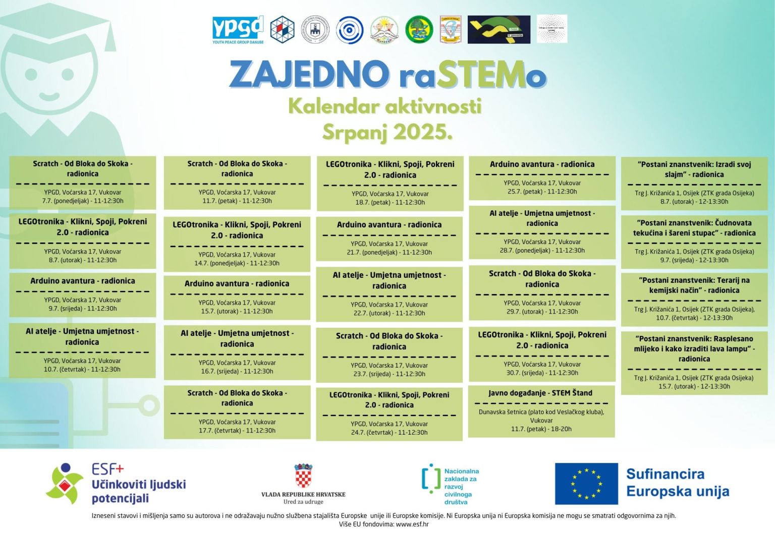 Pozor! Pozor! Nastavljamo u STEM tonu i u srpnju uz novi kalendar aktivnosti u okviru projekta “Zajedno raSTEMo”! Vaša je briga prijaviti i dovesti djecu, a naša približiti im i učiniti ljeto zabavnim uz STEM 😀