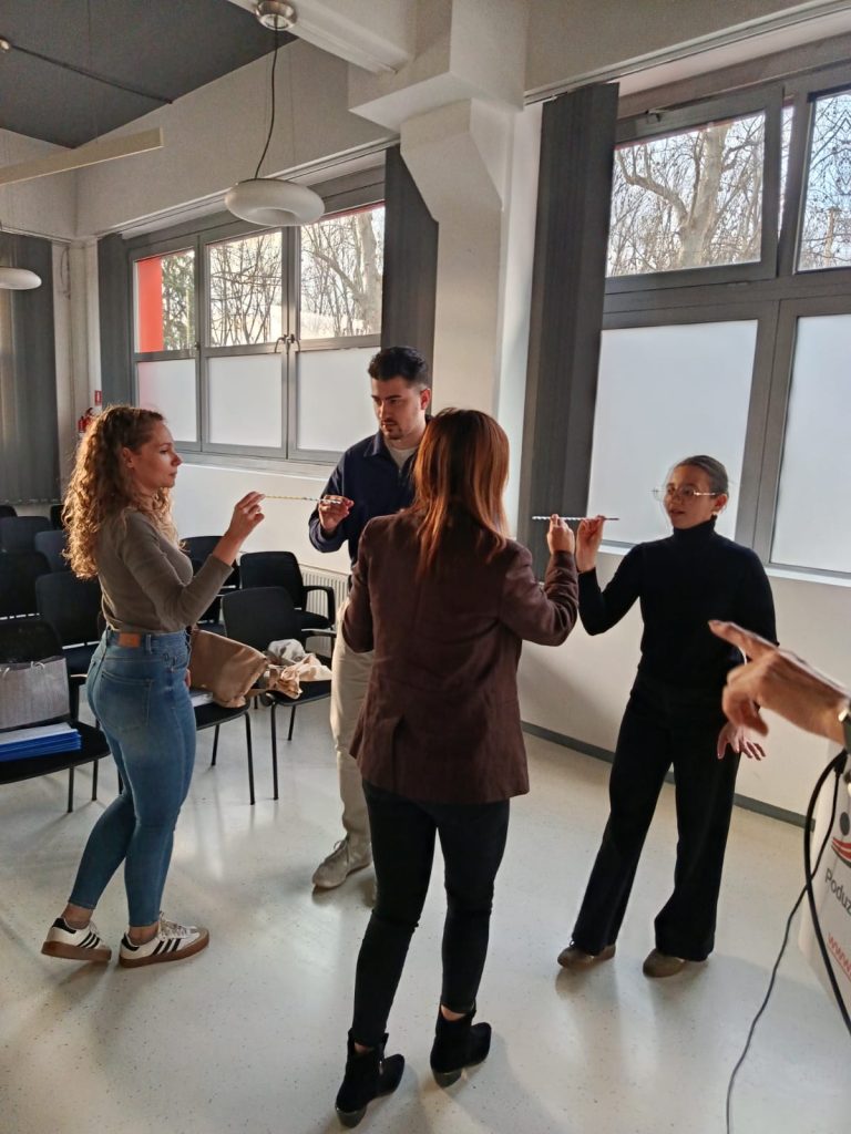 Dana 12. ožujka 2026. održali smo novu radionicu u okviru projekta “Budi neovisan i svoj!”. Na samom početku, podsjetili smo se što je rapor – hodajući u parovima, gledali smo u točku u kojoj se dodiruju slamke (to je