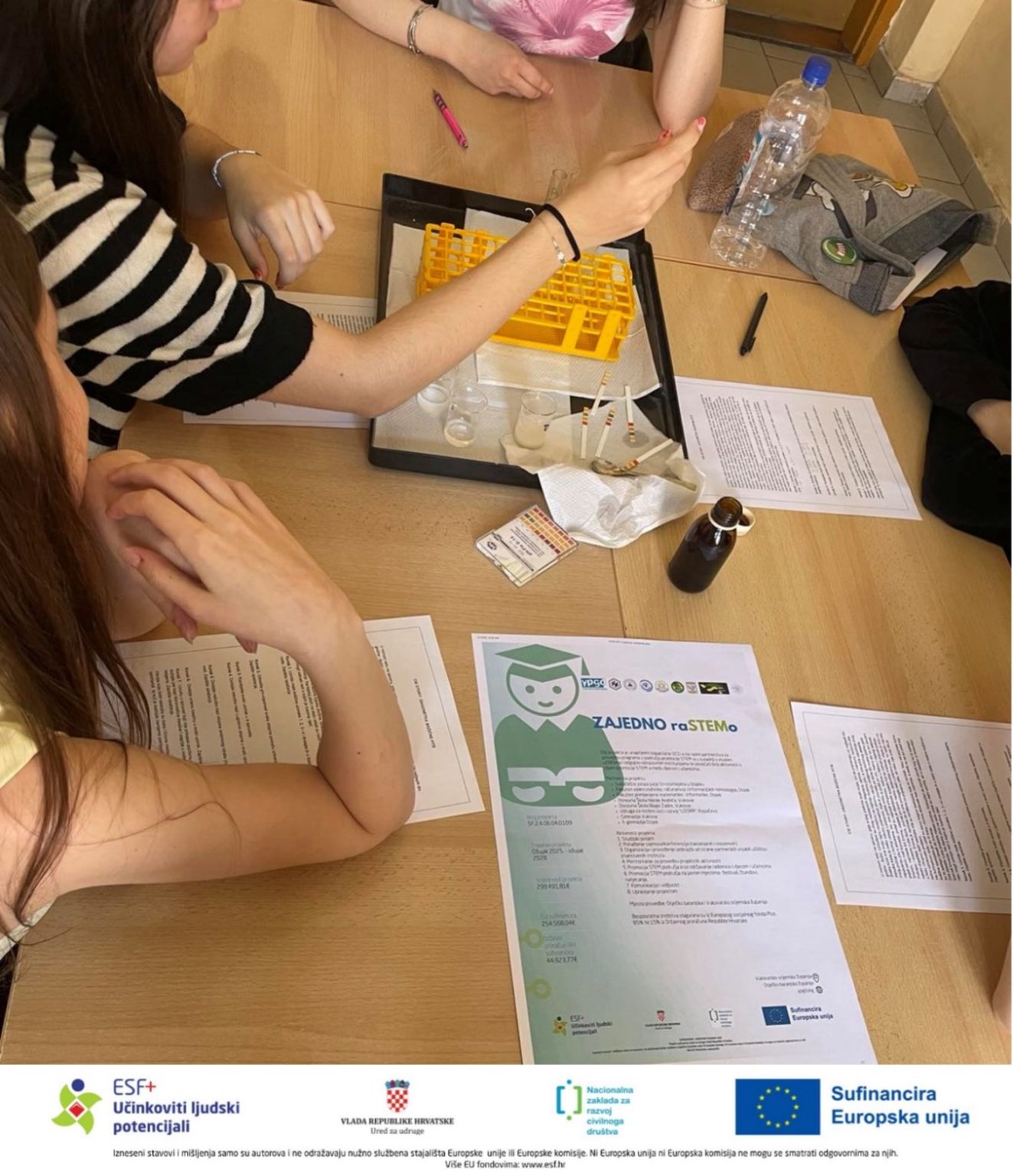 Dana 16. travnja 2025. godine održana je radionica u okviru aktivnosti promocije STEM-a kroz održavanje radionica s učenicima. Radionica je održana u vremenu od 10:30 – 12 sati na temu “Zagonetka božićne pite”. Učenici su na zabavan način i kroz igru usvajali znanje i primjenu kemije.