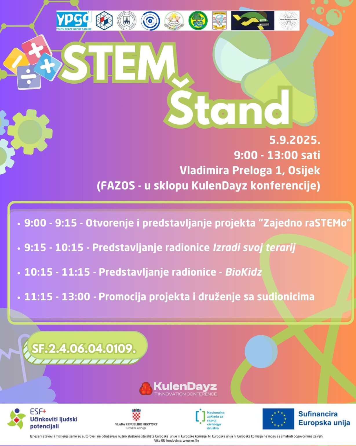 I dok su STEM radionice za djecu i mlade u Vukovaru i Osijeku u tijeku u okviru projekta “Zajedno raSTEMo”, mi nastavljamo s promocijom naših STEM aktivnosti i najavljemo naš STEM štand u okviru javnog događanja – konferencije KulenDayz u okviru kojeg se organizira KulenDayzKidz ![]()